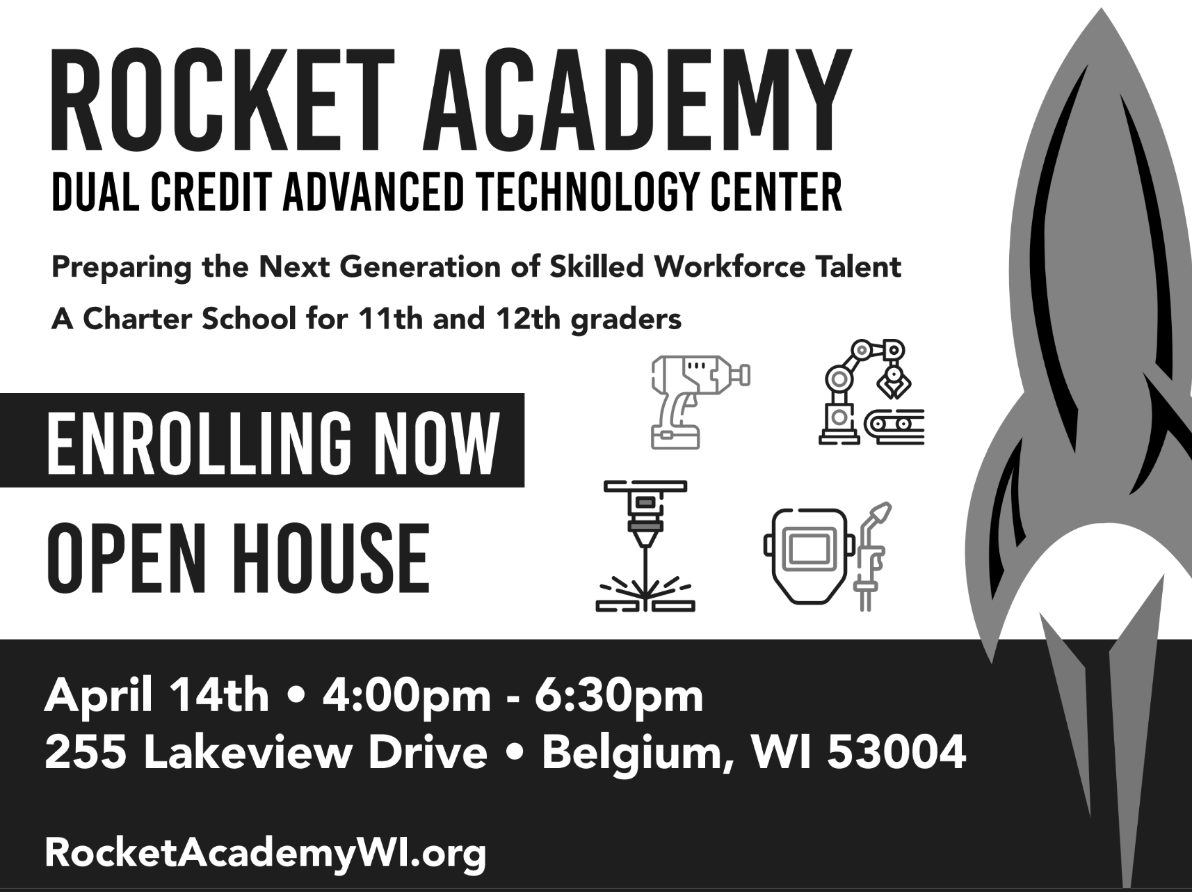 Home of the Rocket Academy a public charter school for 11th and 12th graders focusing on technical manufacturing and general employability skills. We are located in the Cedar Grove-Belgium School District, but are open to any student who wants to experience hands-on learning and prepare for a successful career in manufacturing. Currently enrolling students from Manitowoc, Ozaukee, Sheboygan and Washington counties.